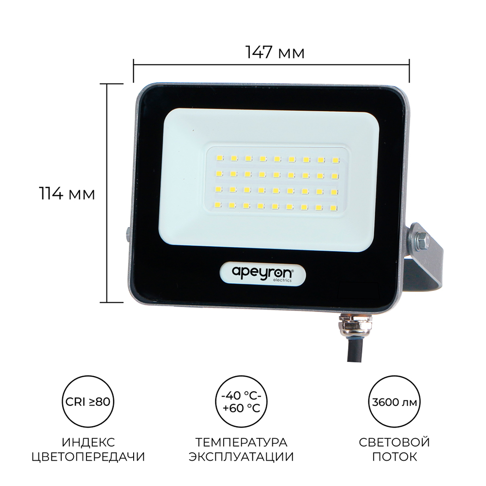 APEYRON Прожектор Серый (30W, 220V, 6500К, IP65)(С) Фото 10