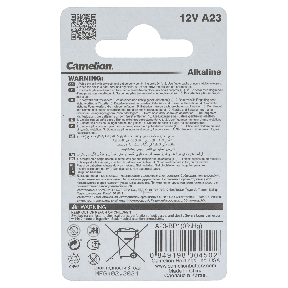 Технические характеристики Батарейка LR23A BL-1 Camelion
