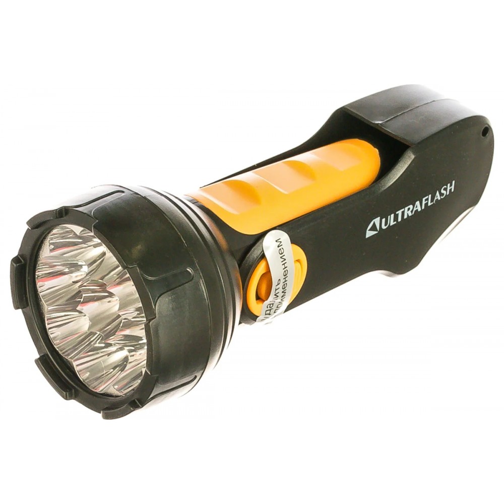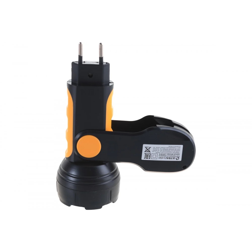 Технические характеристики Фонарь светодиодный аккумуляторный Чёрный + Жёлтый, 9 LED, 220В, SLA, складная вилка Пластик, коробка LED3816 ULTRAFLASH