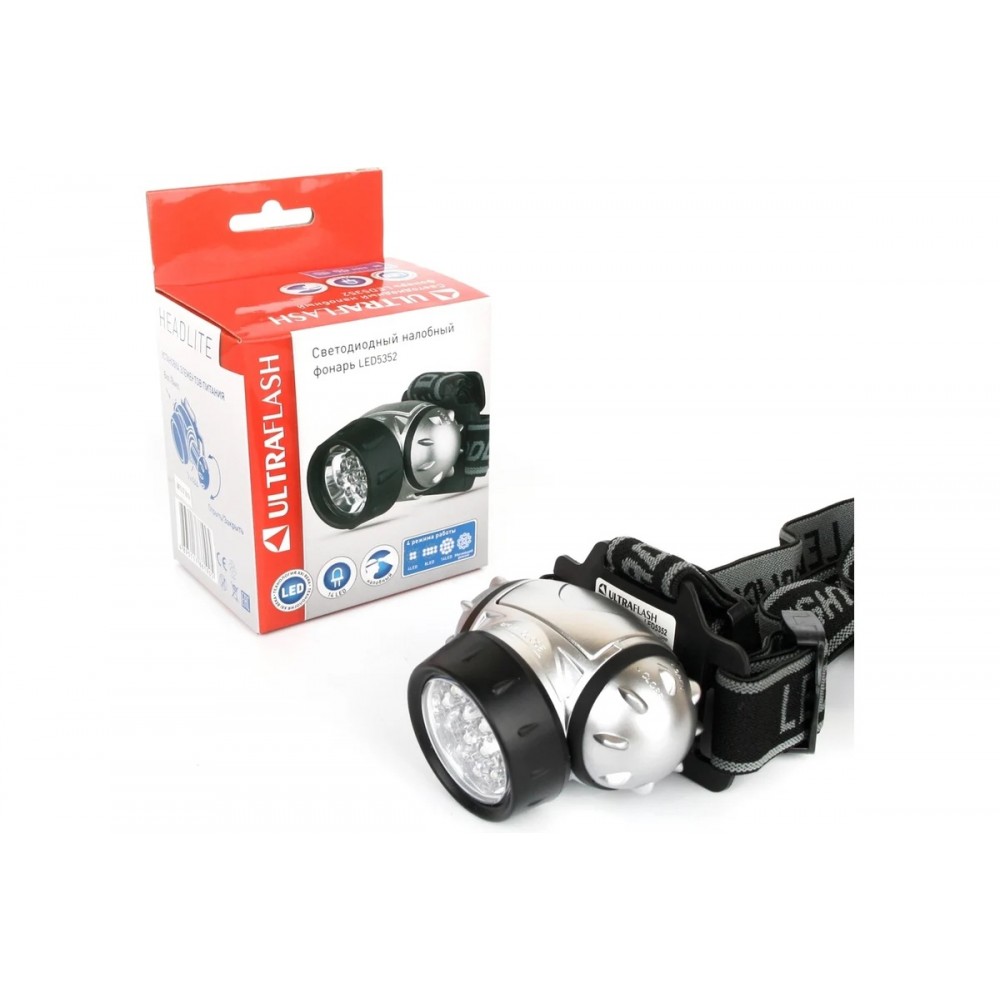 ULTRAFLASH LED5352 - это налобный фонарь, отличающийся общей компактностью, а так же легкостью и эргономичностью своей конструкции. Он обеспечивает достаточный световой поток для комфортного передвижения в темноте. В данной модели в качестве источника света использован 19 светодиодных ламп. Фонарь имеет 4 режима освещения.