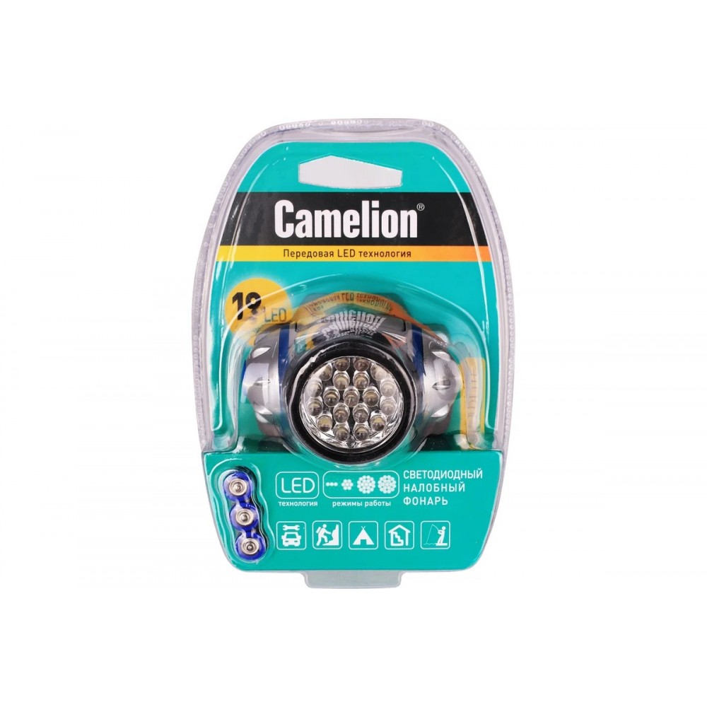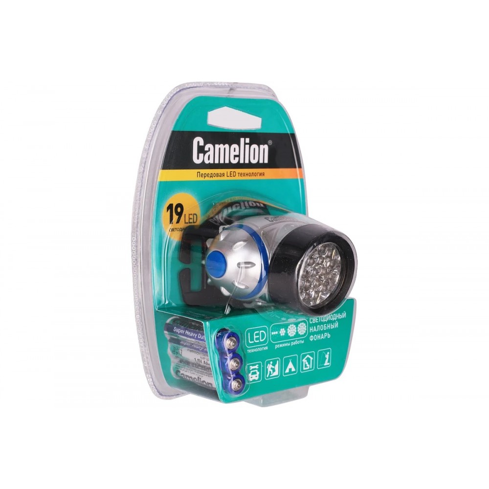 Фонарь светодиодный налобный Металлик, 19LED, 3xR03 в комплекте, 4 режима, Пластик, LED5313-19F4 Camelion
