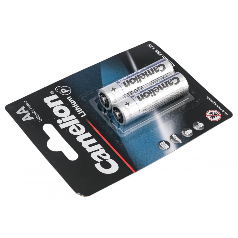 Литиевые батарейки для устройств с высоким энергопотреблением. Работают до 40% дольше щелочных батареек. Батарейка Camelion FR6-BP2, напряжение 1,5В, емкость 2700 мА*ч, кол-во в упаковке 2 шт., размер упаковки 84x114x11 мм, использовать при температуре от -40 до + 60°C, хранить в сухом помещении при температуре от -40 до + 60°C. Срок хранения 10 лет.