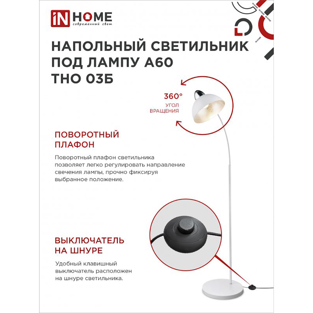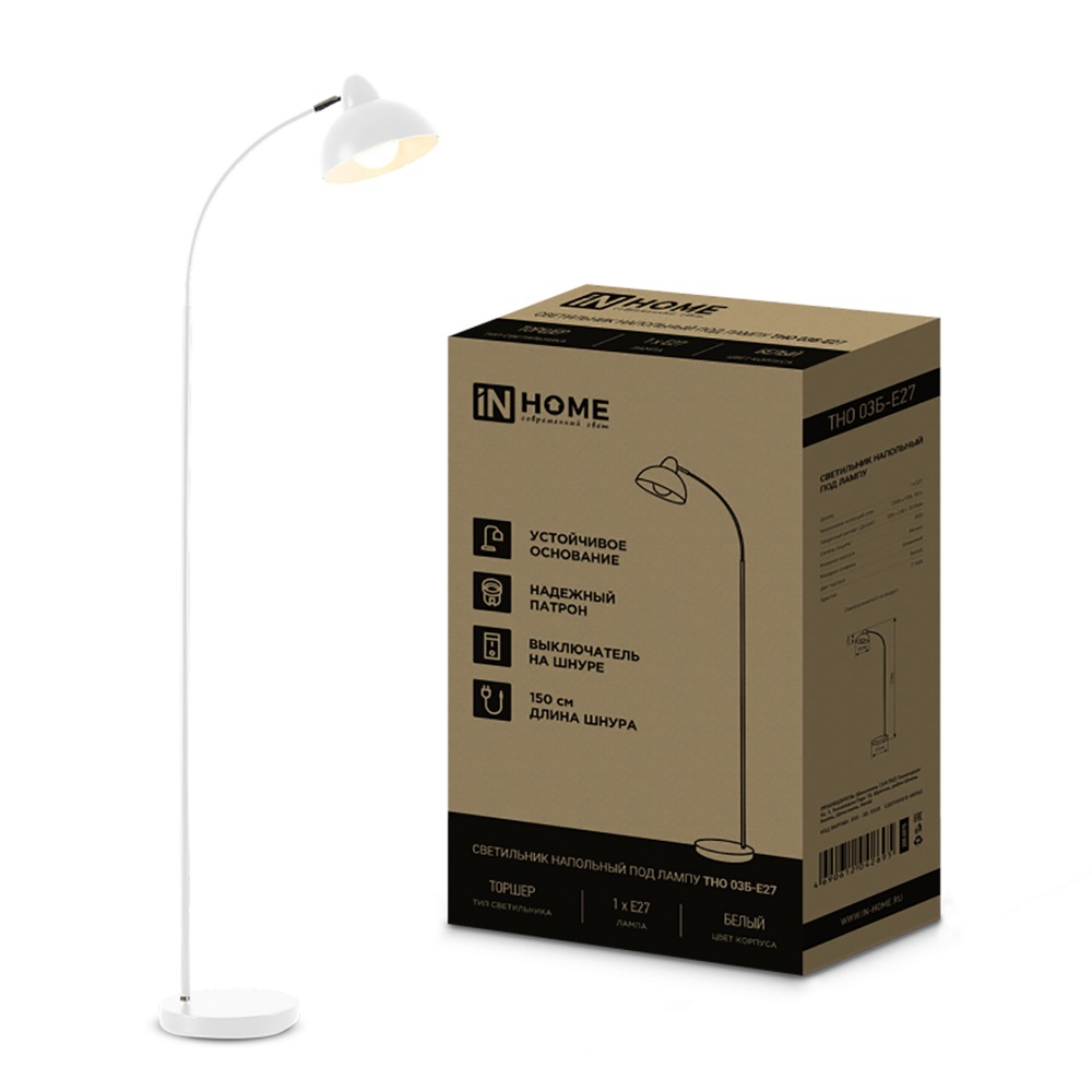Светильник напольный торшер 60Вт, 230В, E27, Белый ТНО 03Б IN HOME