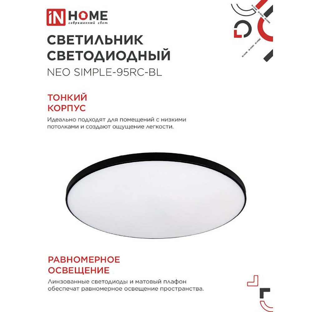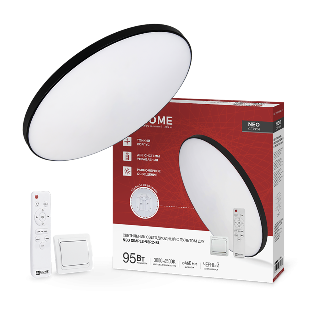 Светильник светодиодный NEO SIMPLE-95RC-BL 95Вт 230В 3000-6500K 7600Лм 460x67мм с пультом ДУ черный IN HOME