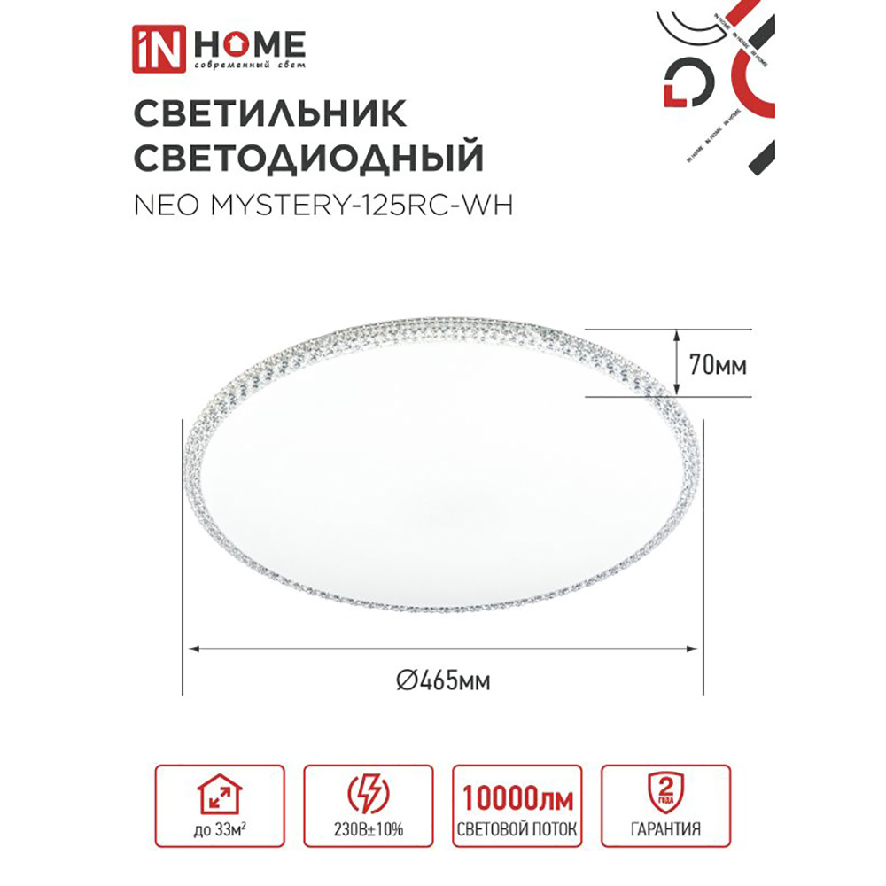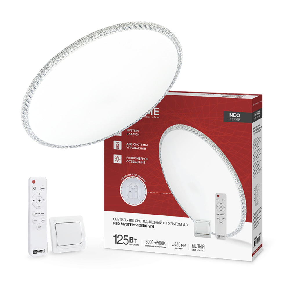Светильник светодиодный NEO MYSTERY-125RC-WH 125Вт 230В 3000-6500K 10000Лм 460x67мм с пультом ДУ белый IN HOME