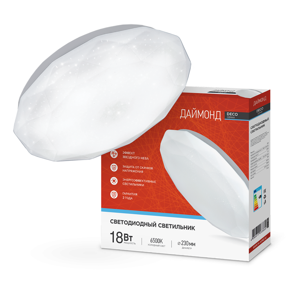 Светильник настенно-потолочный светодиодный 18Вт, 6500К, 260х55мм, IP20, ДАЙМОНД IN HOME