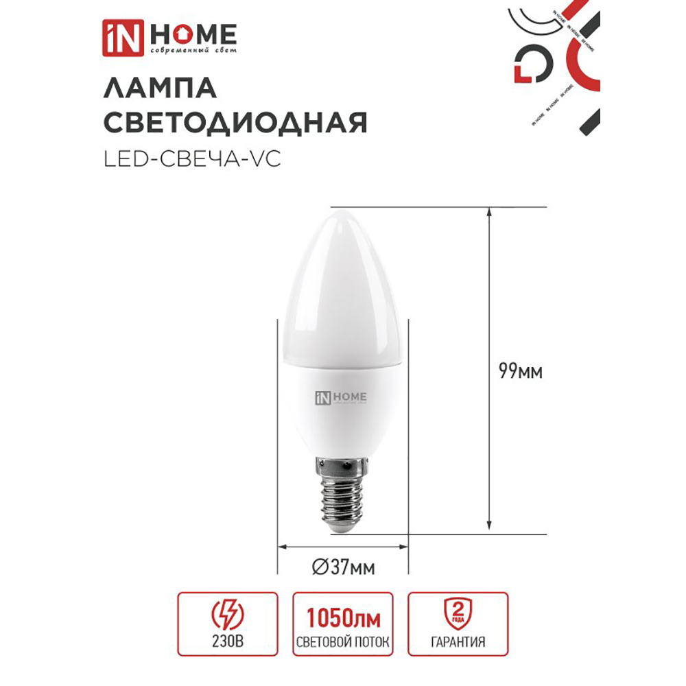 IN HOME Лампа LED 11-C35-865-E14-230 (4шт./упак)