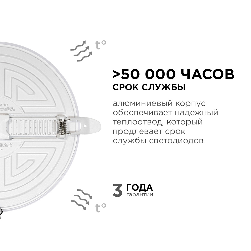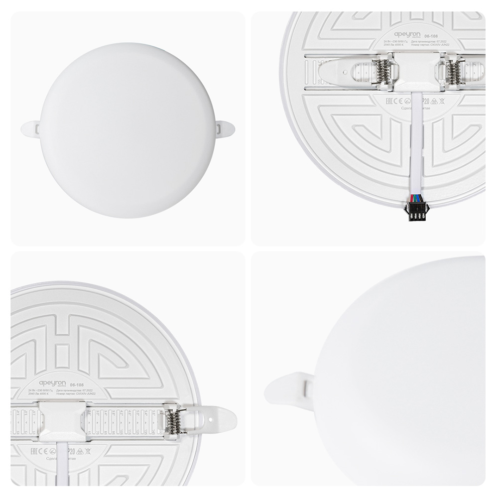 Панель светодиодная встраиваемая безрамочная FLP, 24Вт (18Вт+6Вт), 230В/50Гц, 2040лм, 4000К, IP20, ø170х21мм, круг, 3 режима свечения, регулировка под посадочное отверстие ø55-155мм, алюминиевый корпус Apeyron