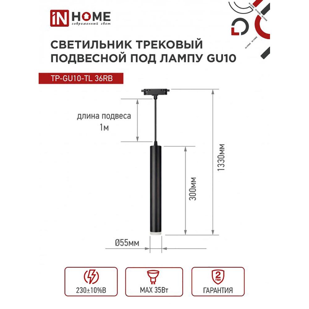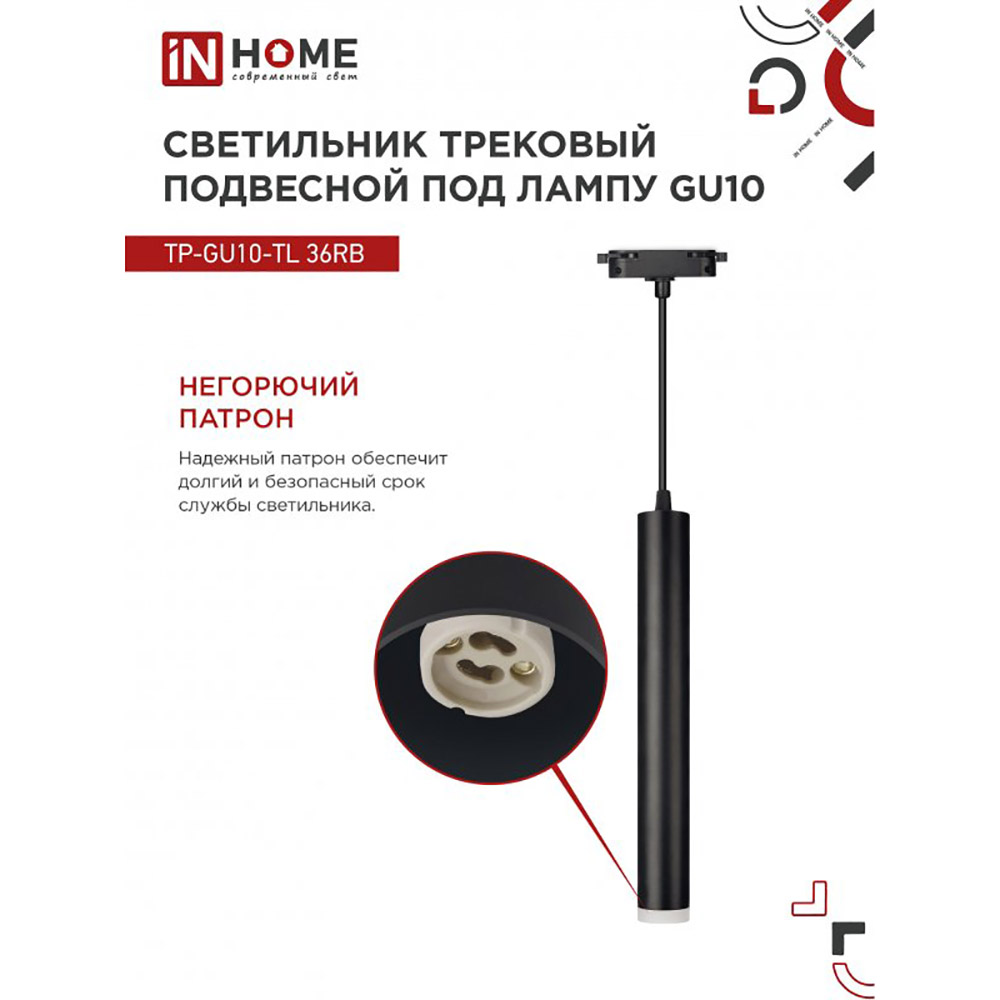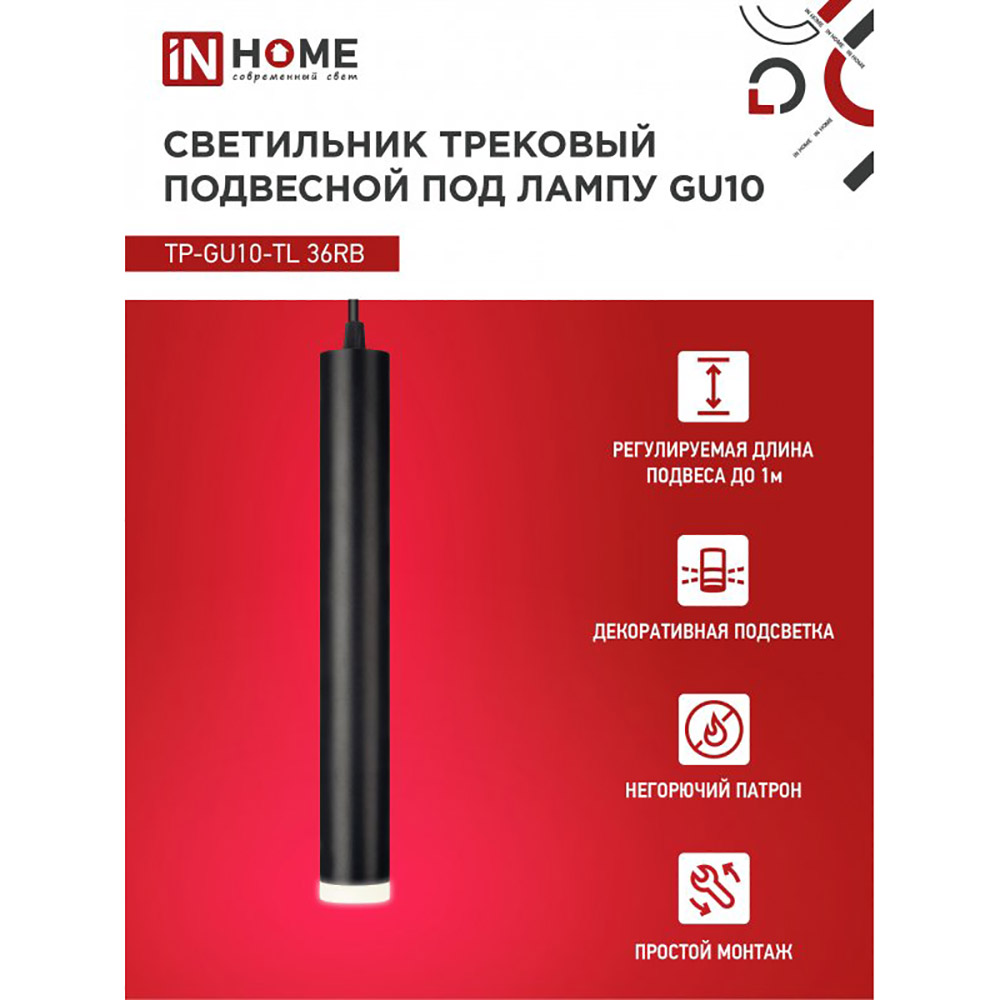 Светильник трековый подвесной TP-GU10-TL 36RB под лампу GU10 с подсветкой 300мм, шнур 1м, черный IN HOME