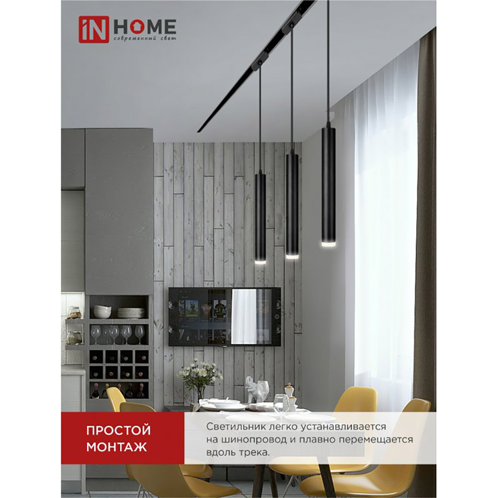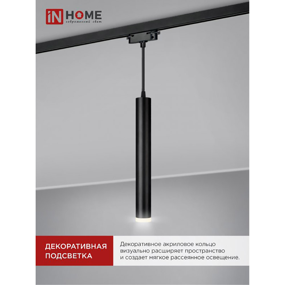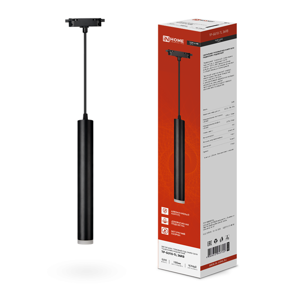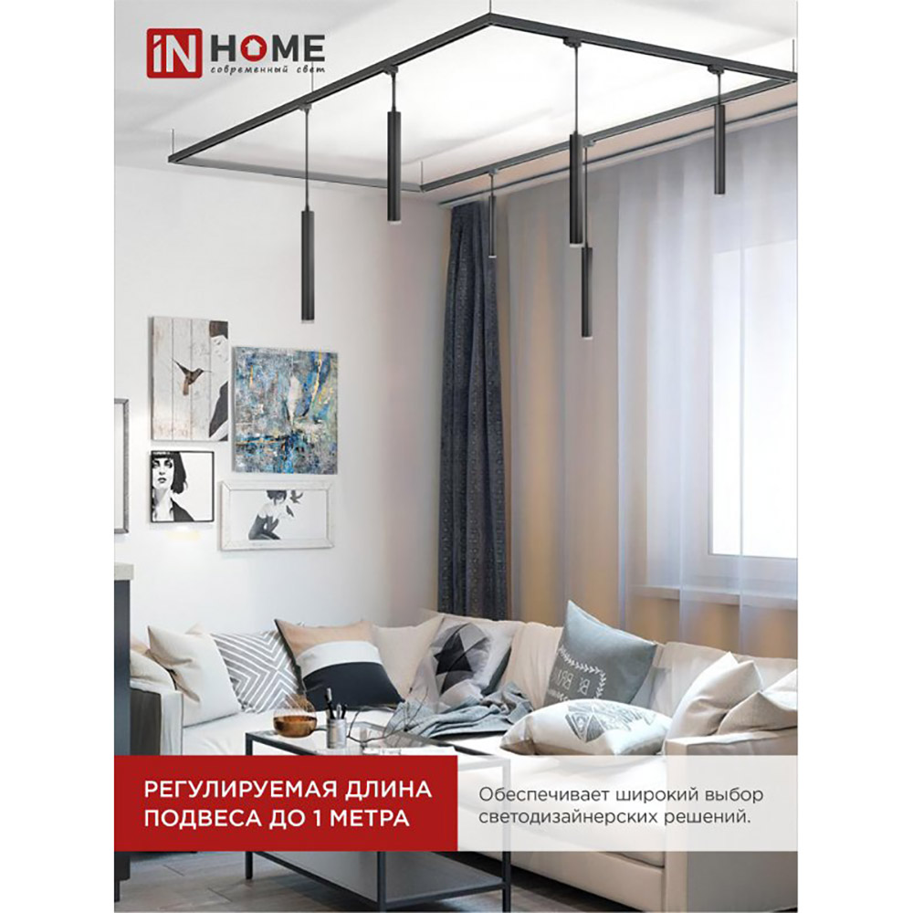 Светильник трековый подвесной TP-GU10-TL 36RB под лампу GU10 с подсветкой 300мм, шнур 1м, черный IN HOME