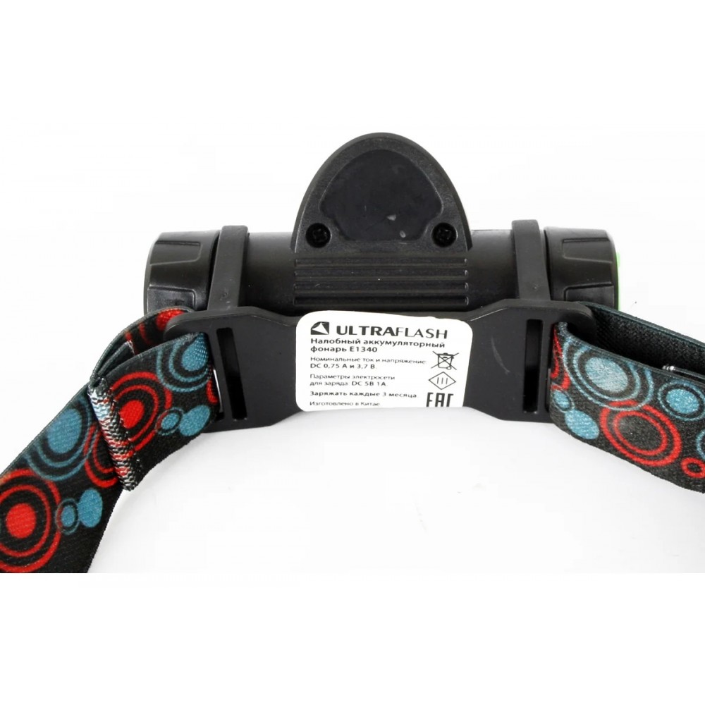 Фонарь светодиодный аккумуляторный налобный Черный, 3Вт XPE + COB LED, 3,7В, 2 режим, Пластик, коробка LED1340 ULTRAFLASH Фото 9