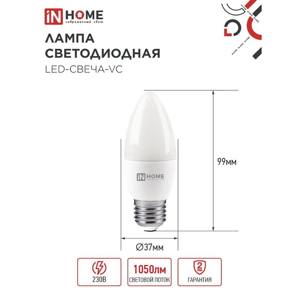 Лампа светодиодная LED-СВЕЧА-VC 11Вт 230В Е27 4000К 1050Лм IN HOME