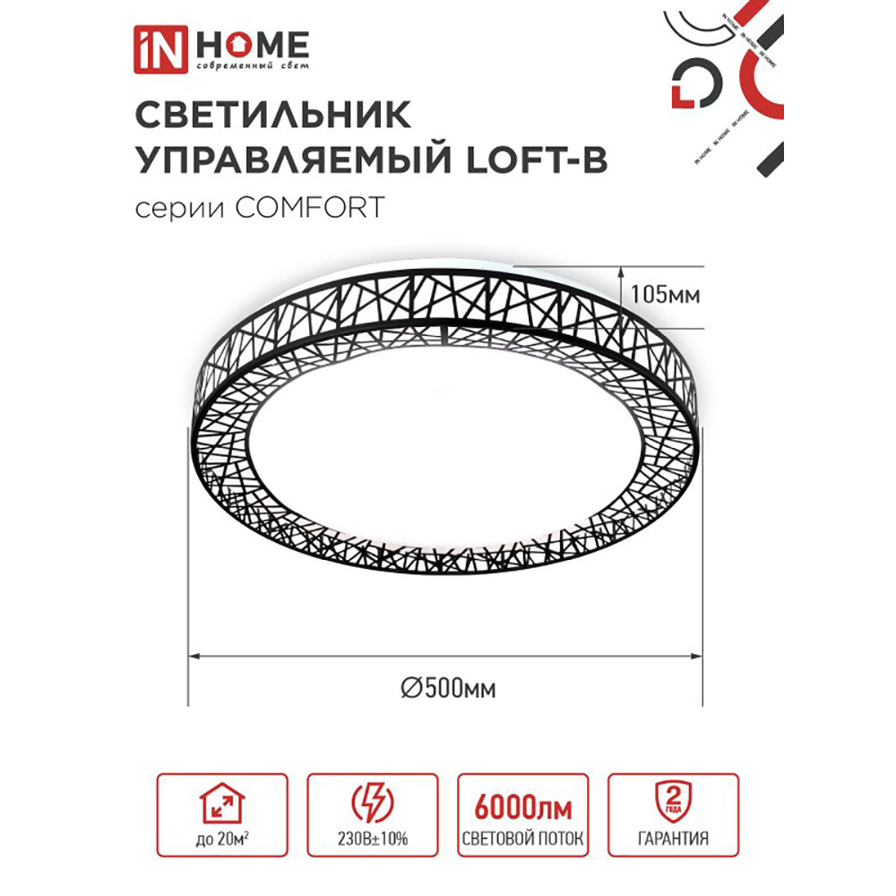 Светильник настенно-потолочный светодиодный 75Вт, 3000-6500K, 500x100мм, IP20, диммируемый COMFORT Loft-BK IN HOME
