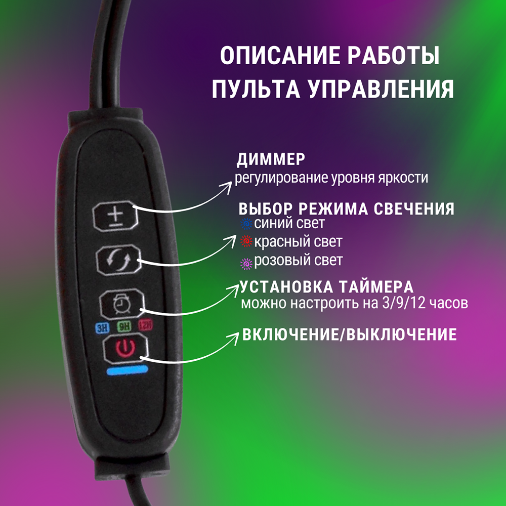 Светильник настольный на прищепке светодиодный СНП-Т2-ФИТО 4П40 40Вт 4 плафона, пульт на шнуре Черный IN HOME Фото 6