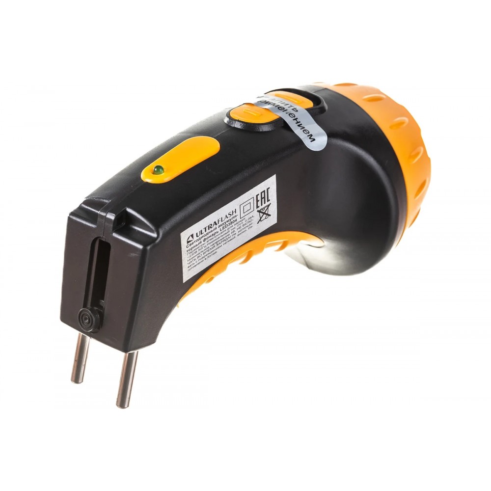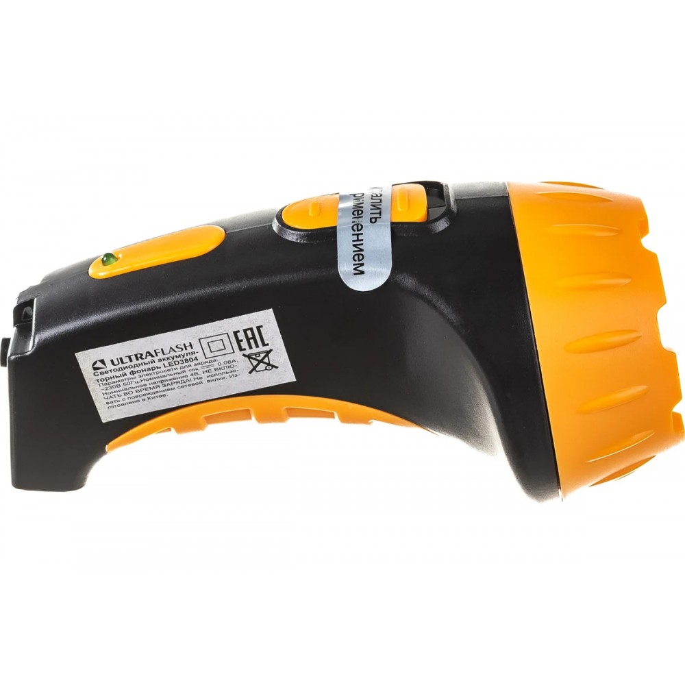 Фонарь Ultraflash электрический светодиодный аккумуляторный. Цвет корпуса: черный с желтым. Материал корпуса - пластик. Источник света - 4 светодиода в индивидуальных отражателях со световым потоком 15 люмен. Дистанция освещения - до 20 метров. Один режим работы. Выключатель - тумблер. Время работы при полностью заряженном аккумуляторе: до 8 часов. Заряд напрямую от сети ~220 вольт. Время заряда 8 ч. Комплектация: свинцово-кислотный аккумулятор с напряжением 4 В емкостью 0,5 А-ч, светодиодный индикатор заряда, выдвижная сетевая вилка. Степень пыле-влаго-защиты IP22. Упаковка - коробка.