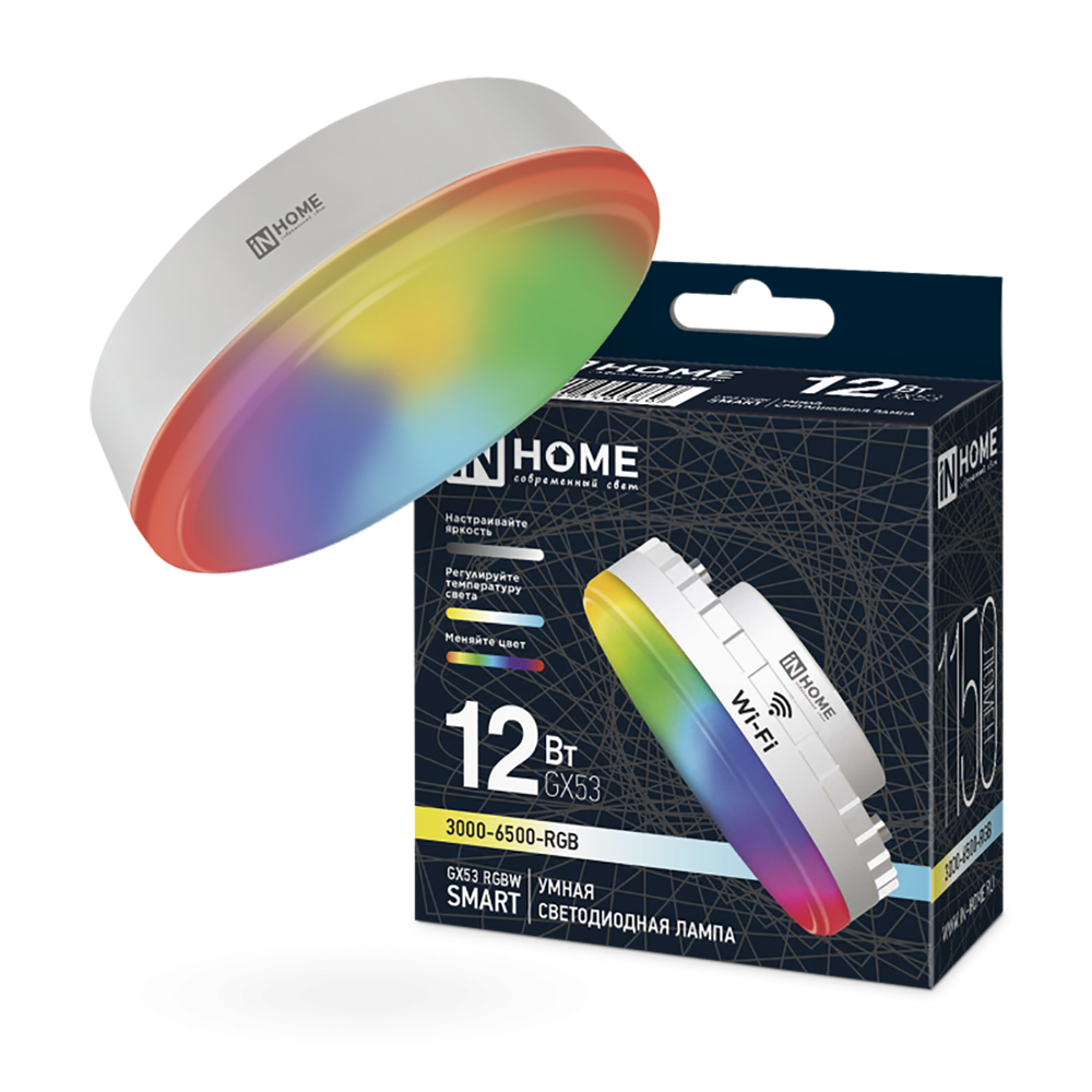 Лампа светодиодная LED-GX53-RGBW-SMART 12Вт 230В Wi-Fi GX53 RGB-3000-6500К 1150Лм IN HOME