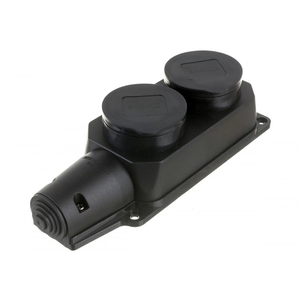 Колодка розеточная 9322 2 гнезда 16A, 230В, IP44, с защитной крышкой, каучуковая IN HOME