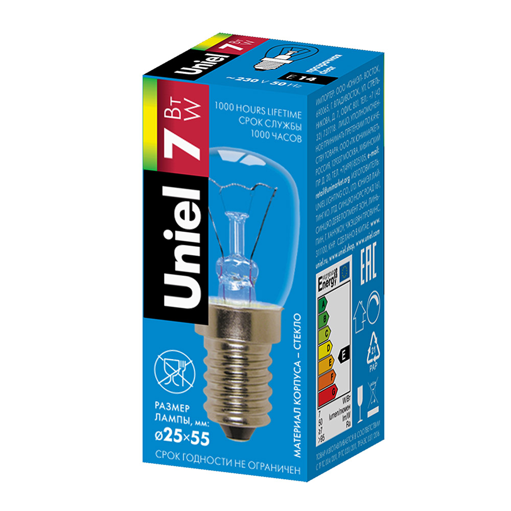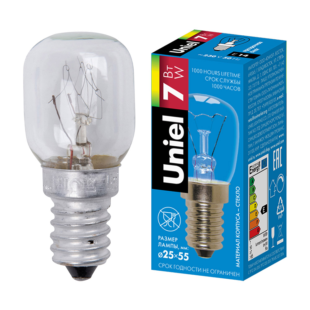Специальная маломощная лампа для точных задач! Лампа накаливания Uniel модели IL-F25-CL-07/E14 разработана для использования в бытовой технике, где важен компактный размер, низкое тепловыделение и стандартный цоколь. Это идеальная и недорогая замена перегоревшей лампочки в холодильниках (освещение камеры) и швейных машинах (подсветка рабочей зоны) многих популярных брендов.