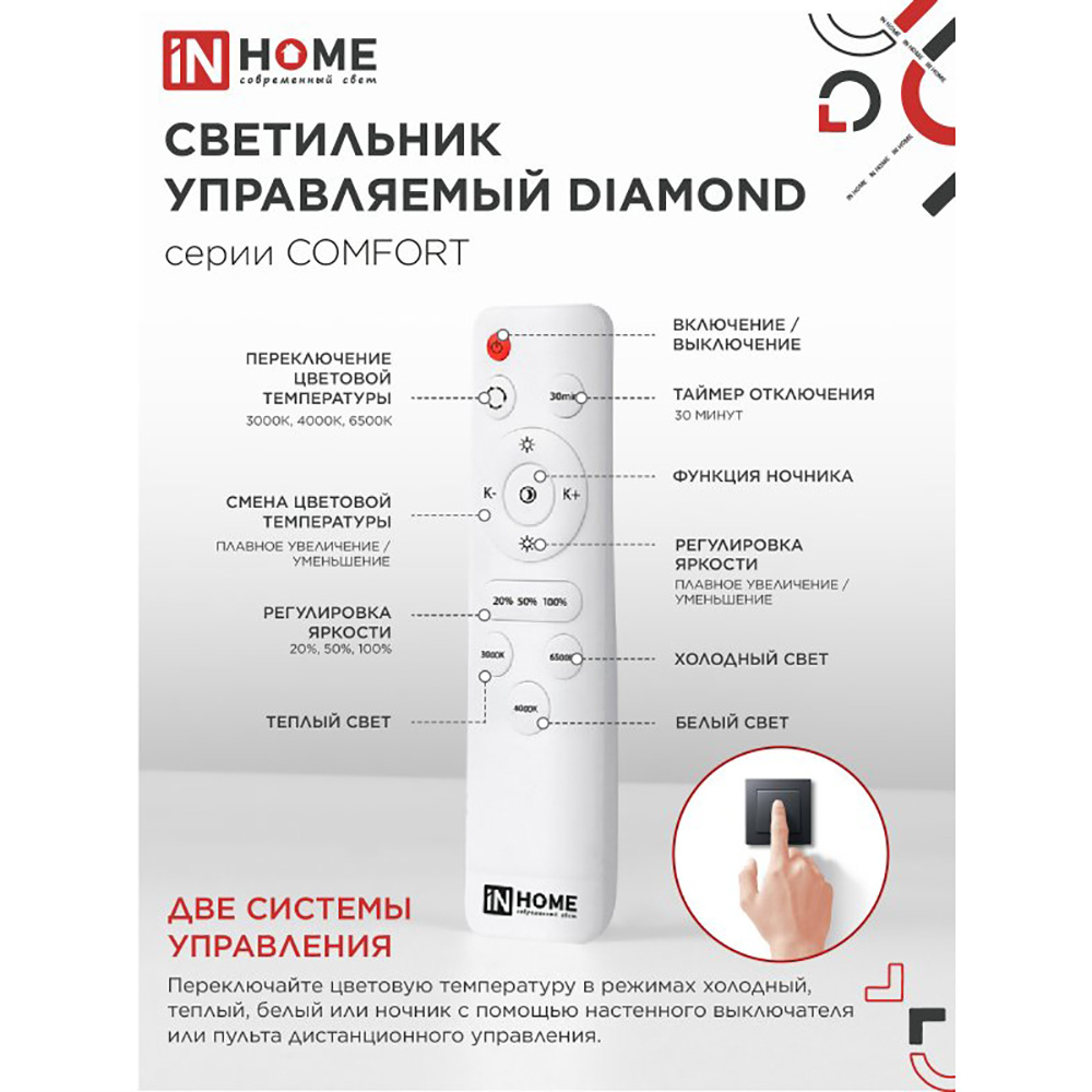 Светильник настенно-потолочный светодиодный 55Вт, 3000-6500K, 330x80мм, IP20, диммируемый COMFORT DIAMOND IN HOME