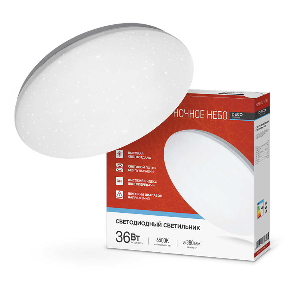 Светильник настенно-потолочный светодиодный 36Вт, 6500K, 380x55мм, IP20 "НОЧНОЕ НЕБО" IN HOME
