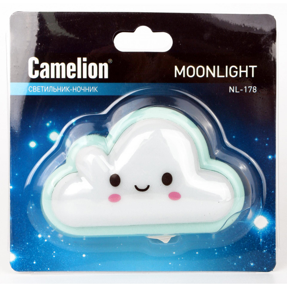 Светильник ночник предназначен для локальной подсветки в детских комнатах, спальнях, гостиных. Camelion NL-178 \\"Облако\\", питание от сети 220В, размер 100х60х50мм, источник света - встроенные светодиоды, мощность 0,5Вт, кол-во светодиодов - 4, пластик.