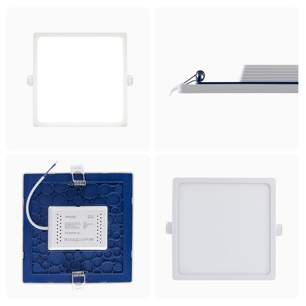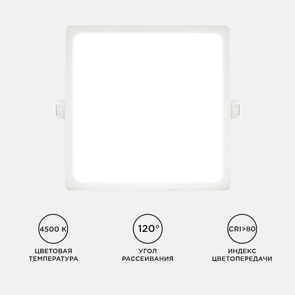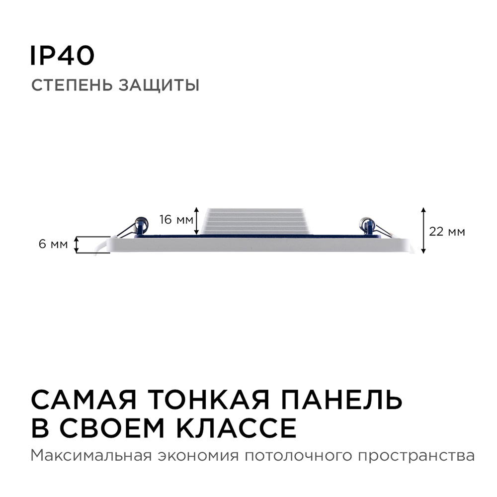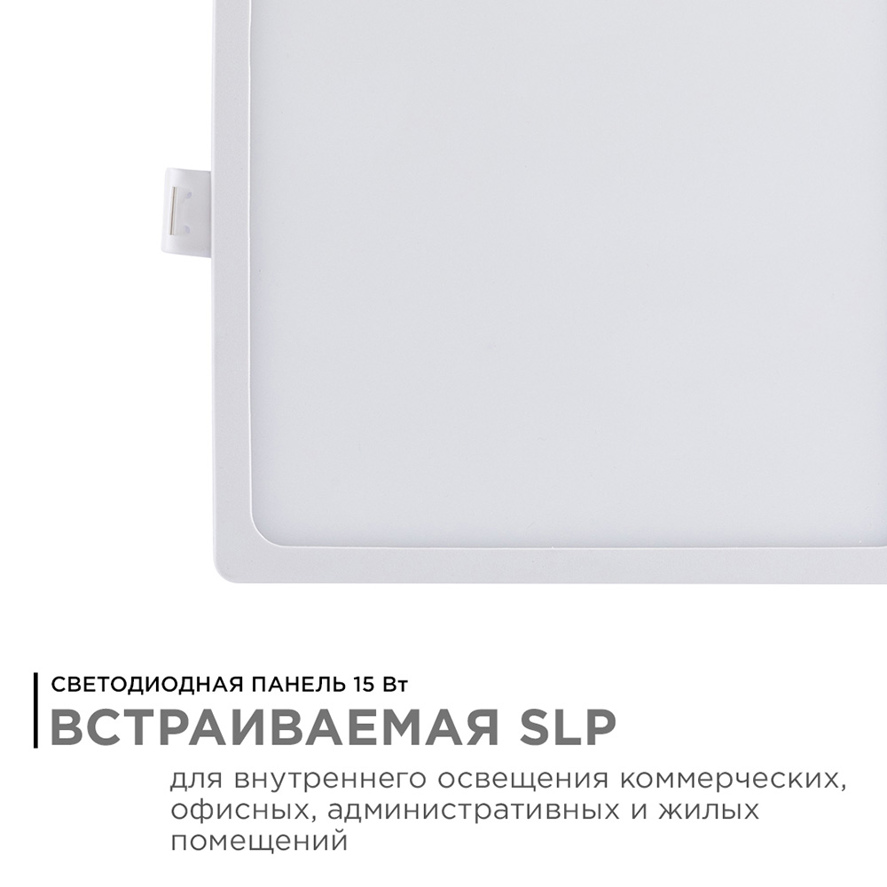 Технические характеристики Панель светодиодная встраиваемая квадратная 15Вт, 220В, 4500K, 1200Лм, 145x129мм, алюминиевый корпус APEYRON