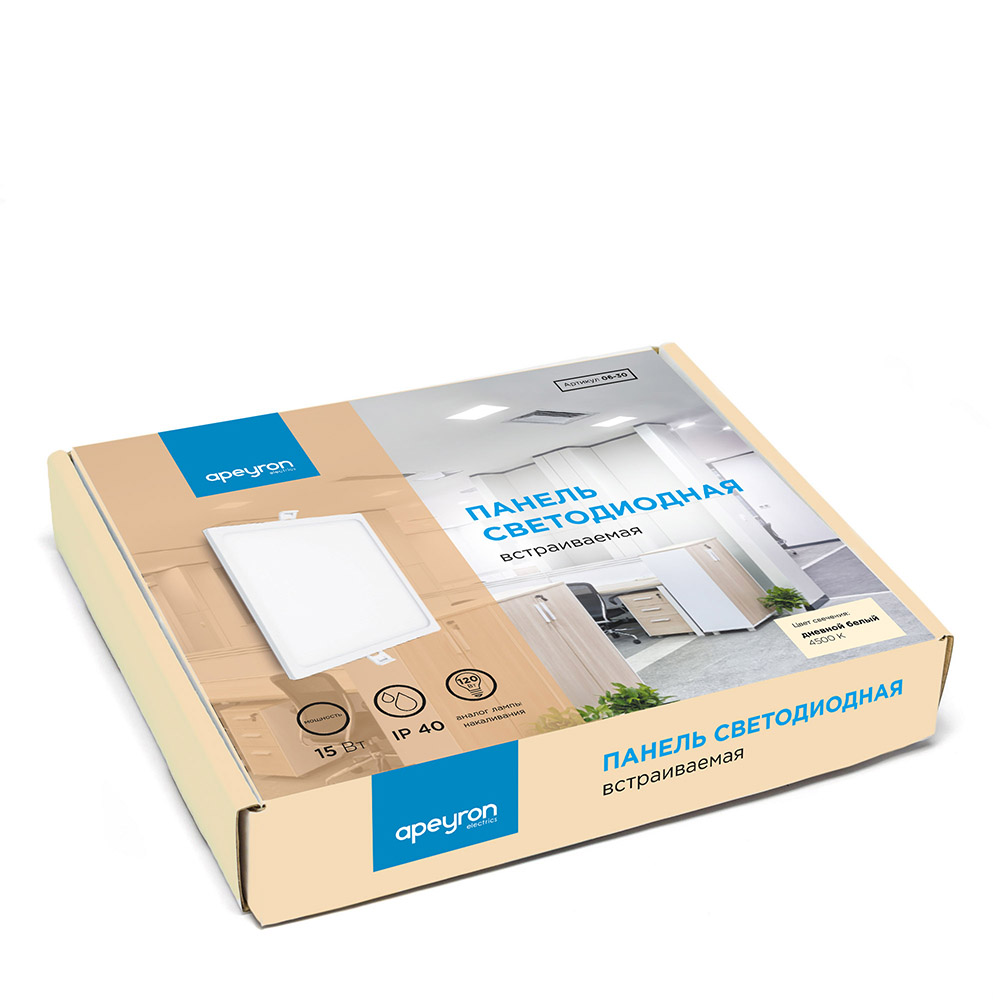 Благодаря непревзойденным свойствам и ультрамодному дизайну светодиодную панель можно применять для декорирования жилых помещений, частных домов, люксовых гостиниц, современных магазинов, престижных офисов. Светодиодные панели Apeyron полностью экологически безопасны, их можно также устанавливать в детских садах, школах и медицинских учреждениях.