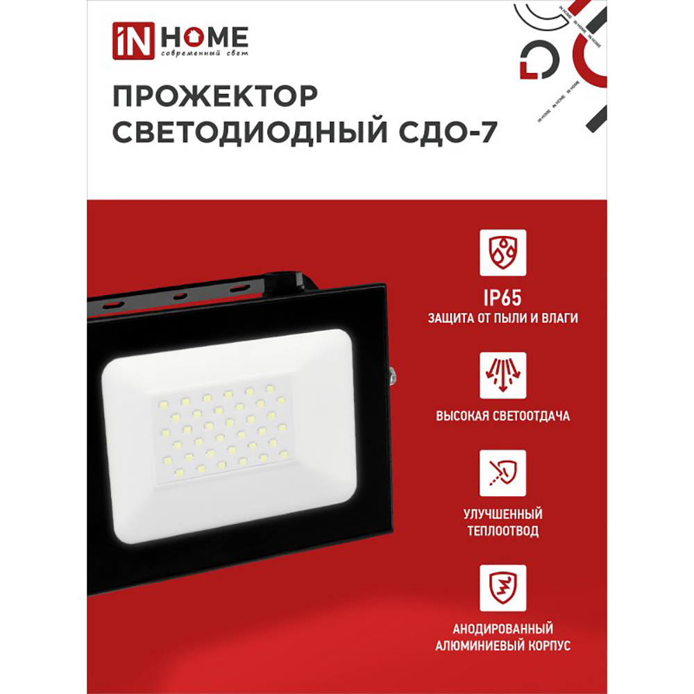 Светодиодный прожектор СДО-7 от IN Home - это надежное и энергоэффективное решение для освещения различных объектов. Он обладает мощностью 50 Вт, цветовой температурой 6500 К и световым потоком 4000 лм. Корпус из прочного алюминия обеспечивает высокую степень теплоотвода и защиту от пыли и влаги по стандарту IP65. Прожектор идеально подойдет для освещения зданий, производственных площадок, архитектурной и рекламной подсветки.