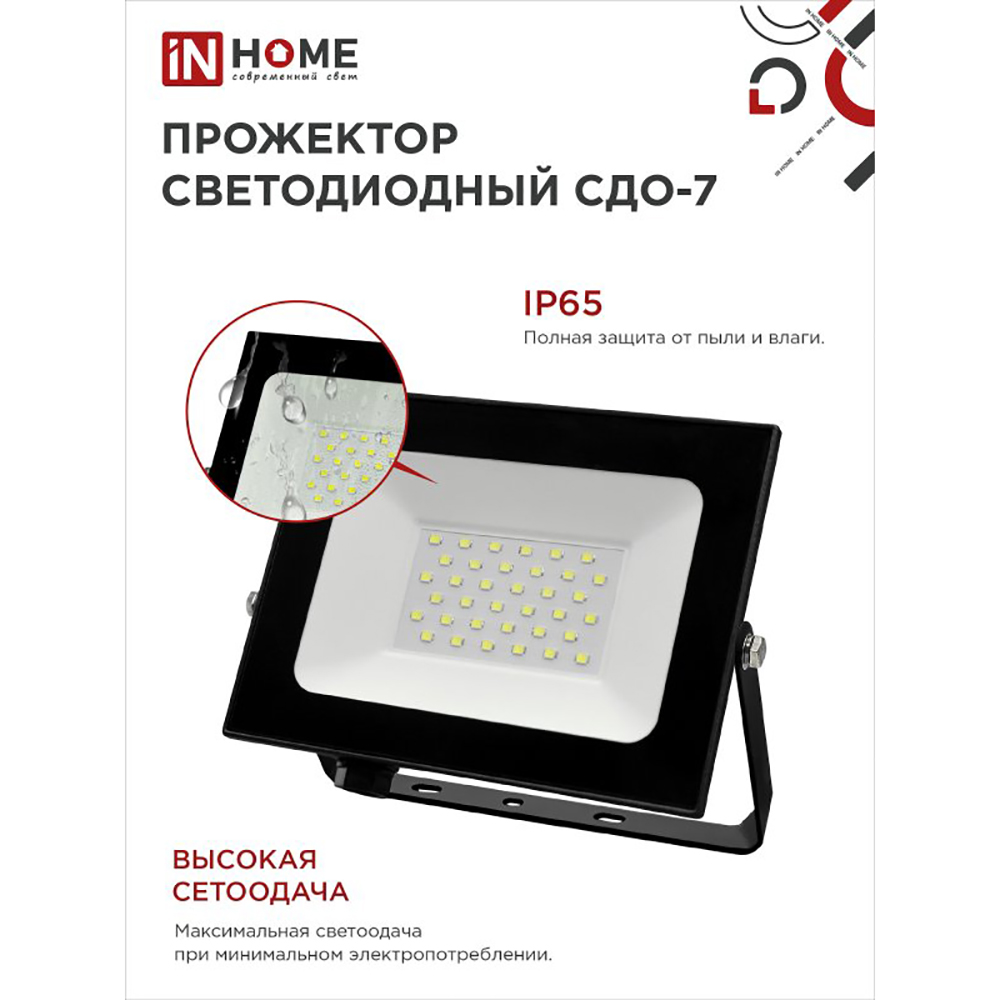Прожектор светодиодный 50Вт, 220В, 6500K, Черный СДО-7 IN HOME