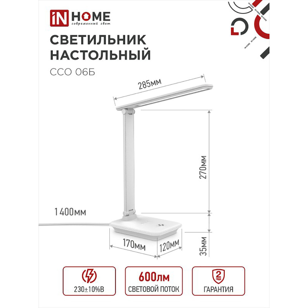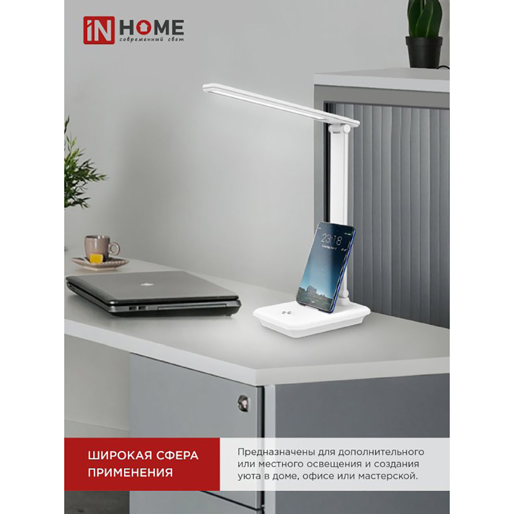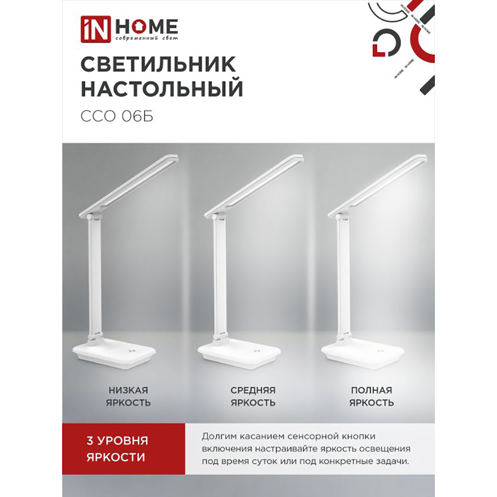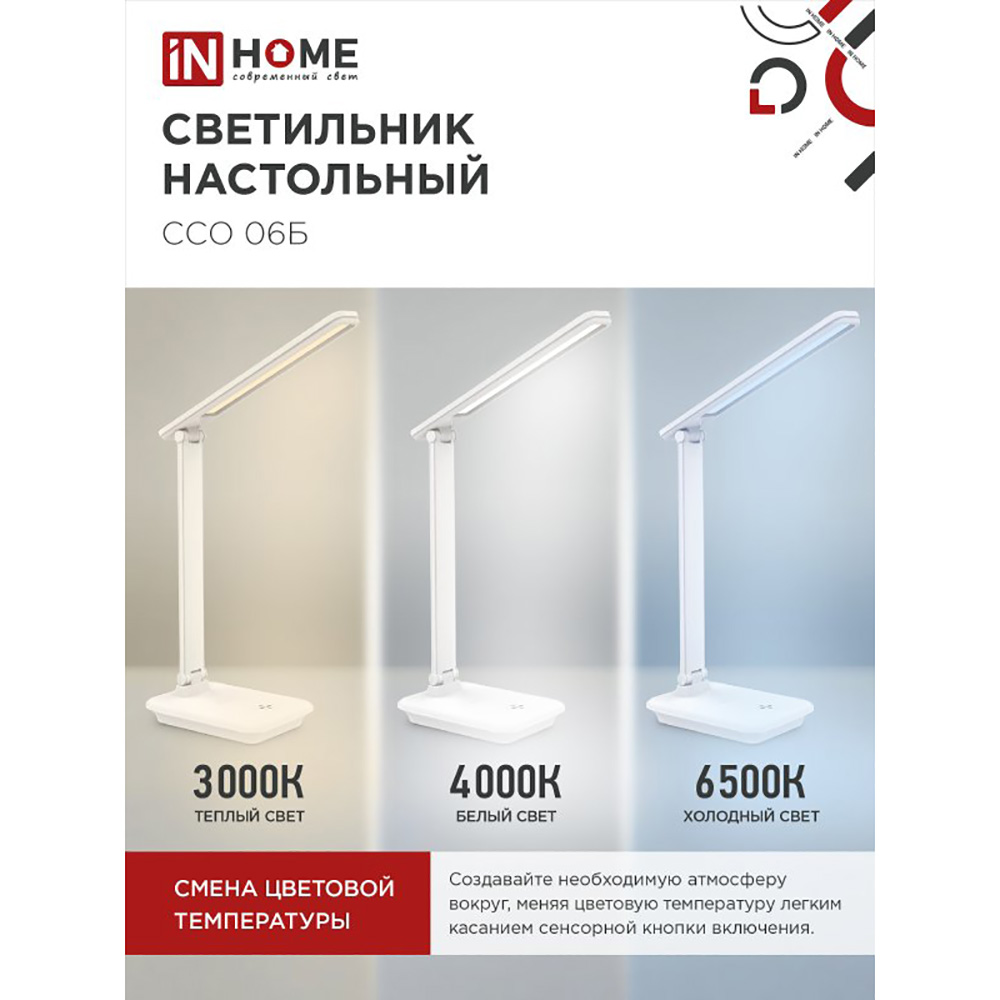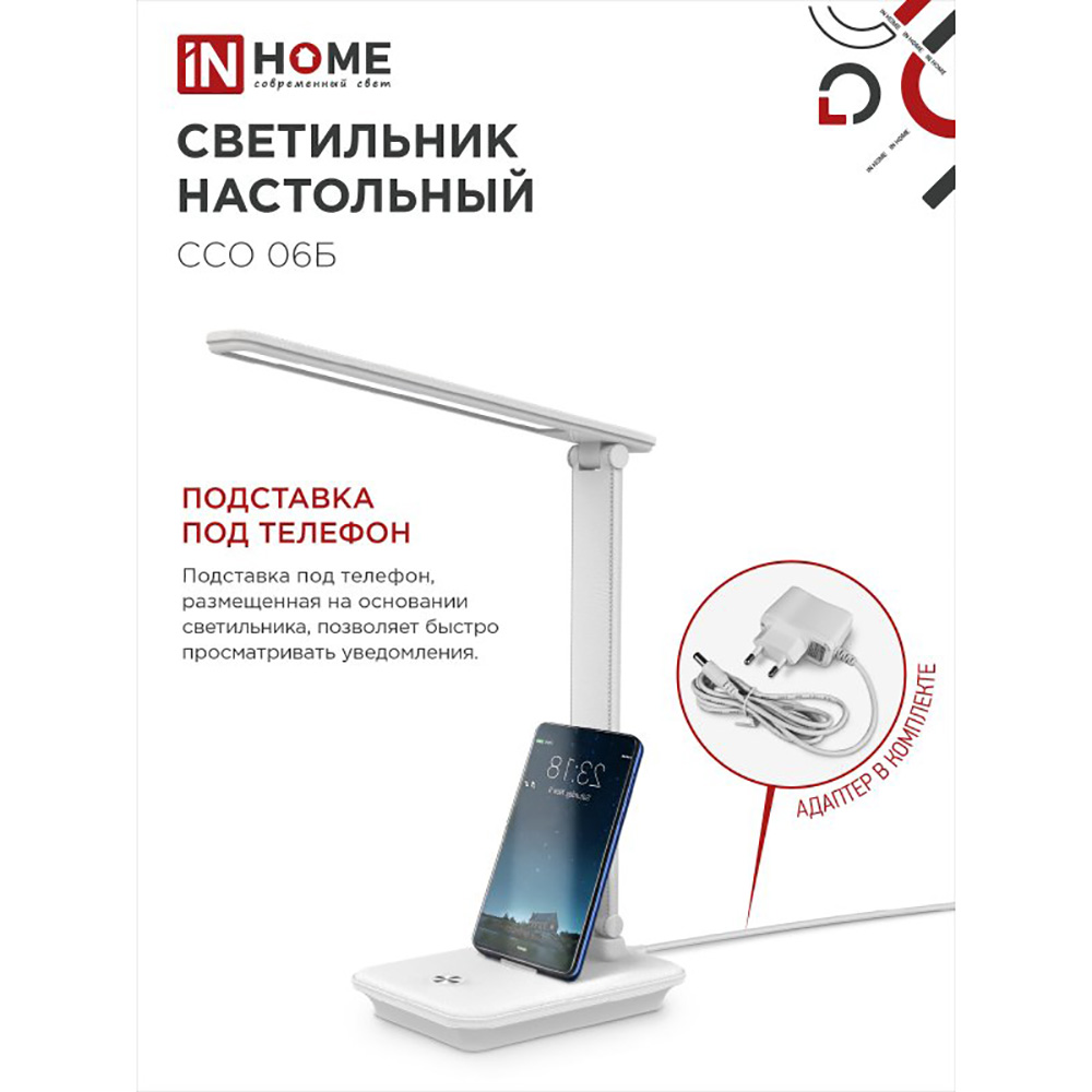 Светильник настольный светодиодный на подставке ССО 06Б 12Вт, 3000-6500К, 600лм, сенсор-диммер, с подставкой под телефон, белый IN HOME