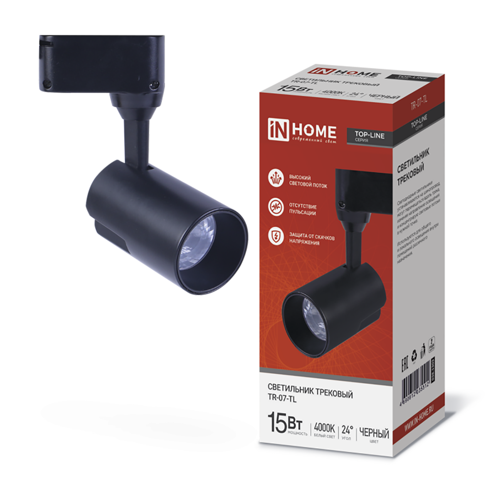 Светильник светодиодный трековый 15Вт 4000К 1500Лм IP40 24 градуса черный TR-07-TL IN HOME