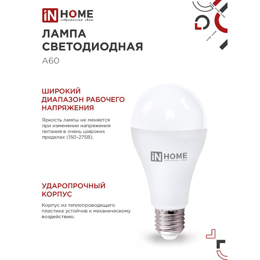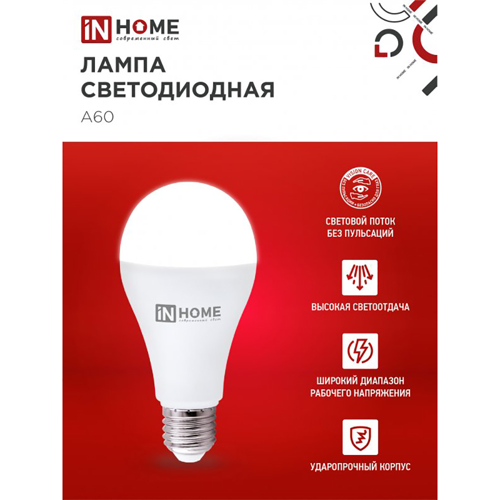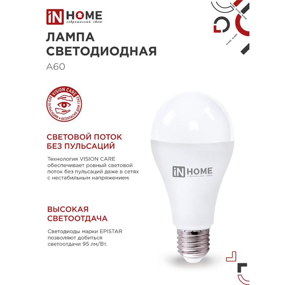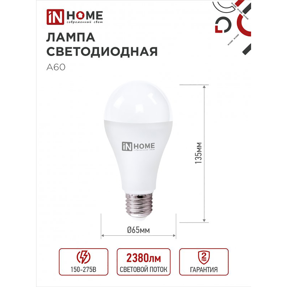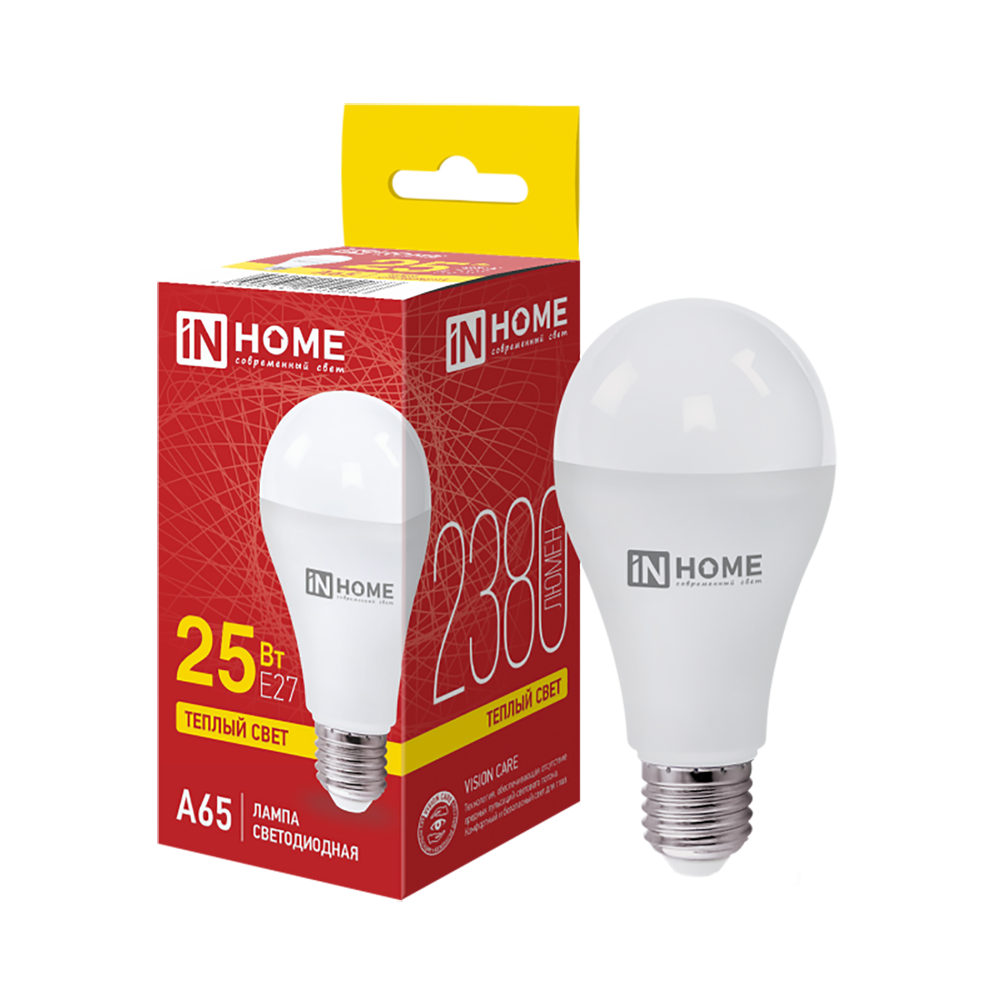 Лампа светодиодная груша 25Вт, A65-VC, E27, 3000K, 220В IN HOME