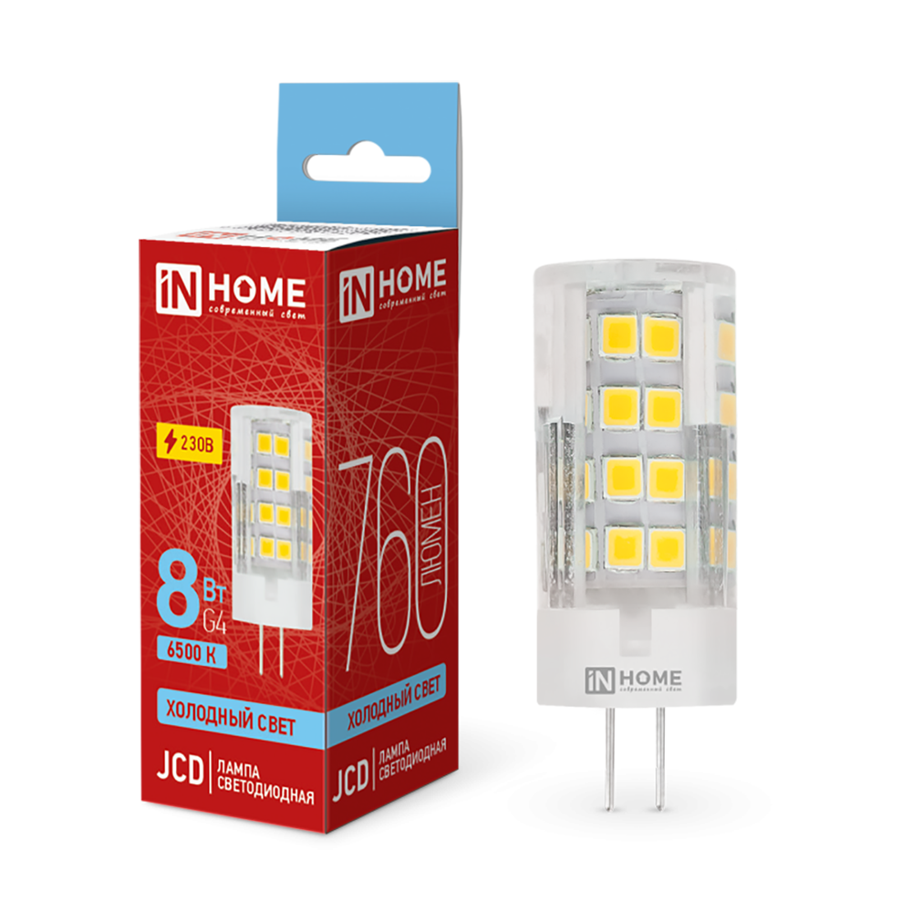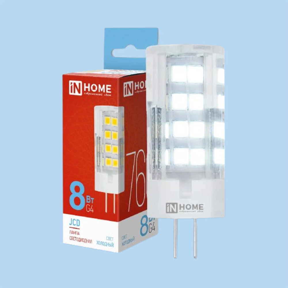 Лампа светодиодная капсульная 8Вт, JCD, G4, 6500K, 230В IN HOME