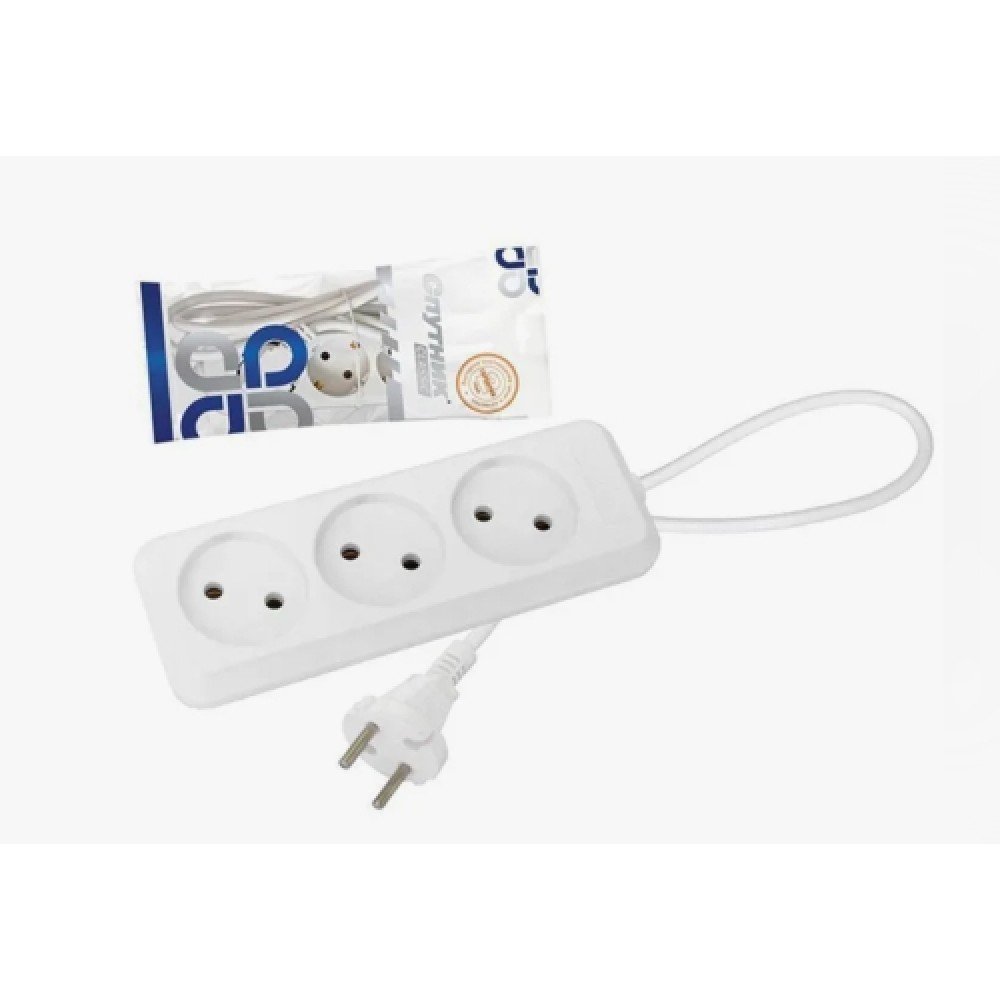 Удлинитель бытовой 3 гнезда, без заземления, 10А, длина 3 метра УК-203 Спутник