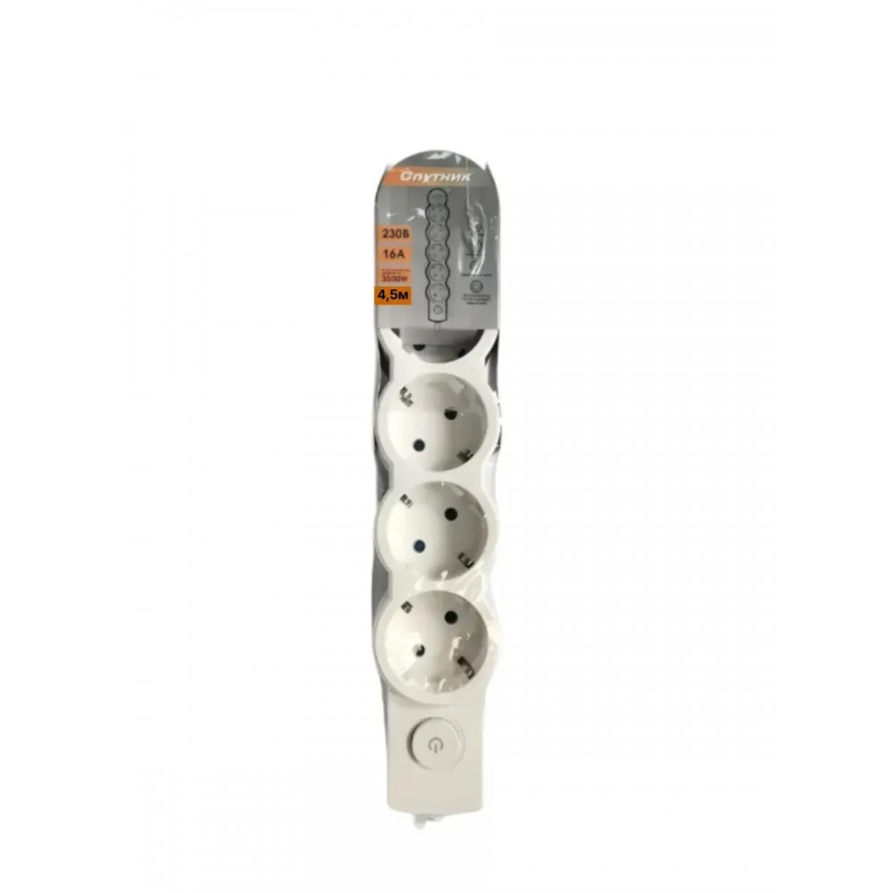 «Спутник» — это высококачественный удлинитель с пятью гнёздами, длиной 4.5 метра и максимальным током 16 А. Он оснащён выключателем для удобного управления подачей питания к подключённым устройствам.